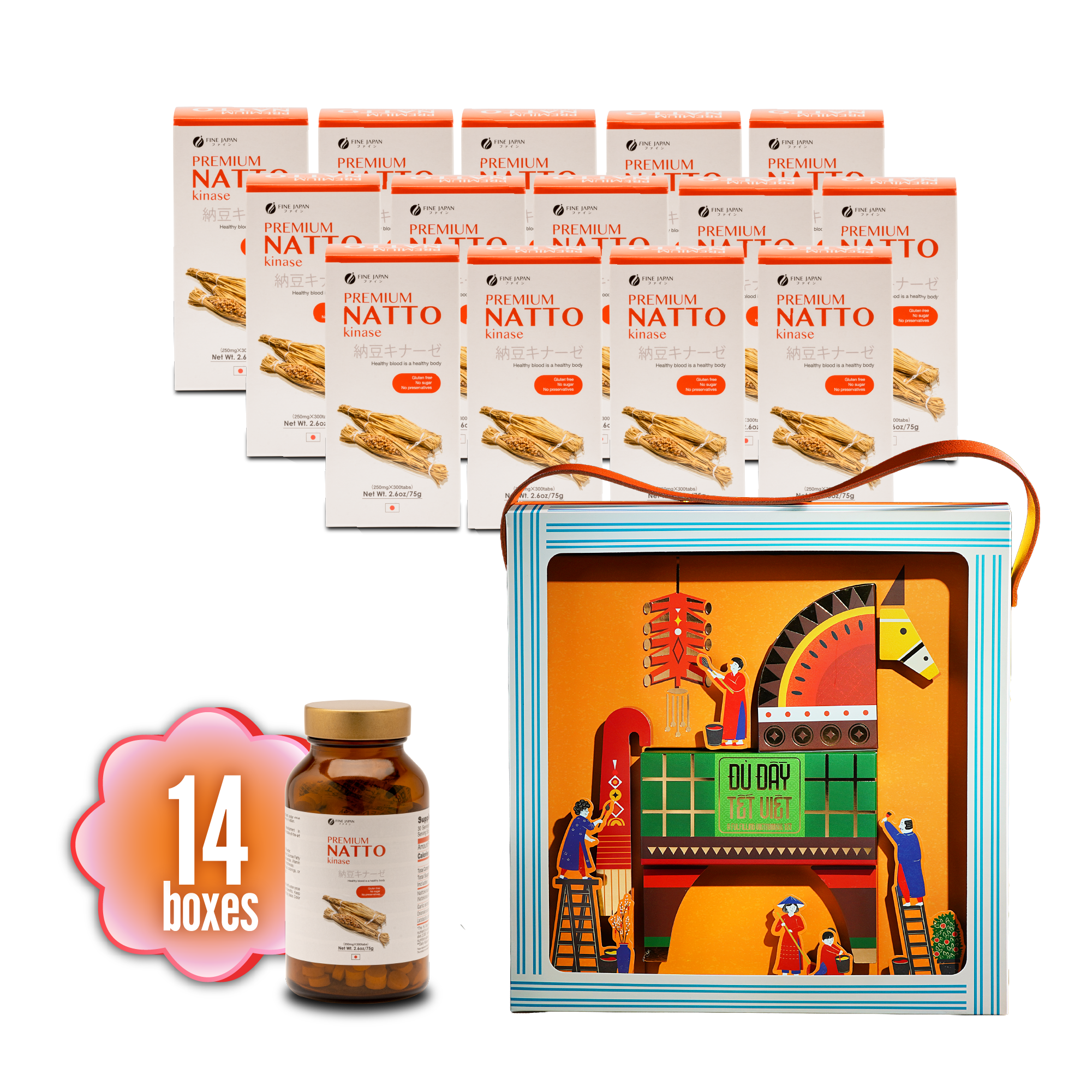 Natto hay đậu nành lên men được sử dụng phổ biến trong các bữa ăn thường ngày của người Nhật và được cho là bí quyết sống thọ của họ nhờ công dụng hỗ trợ ngăn ngừa các chứng bệnh liên quan đến tim mạch. Premium Natto Kinase được điều chế theo dạng viên, không mùi vị, không gluten, không chất bảo quản, giúp nâng cao hiệu quả, tính tiện lợi và sự dễ uống của sản phẩm.